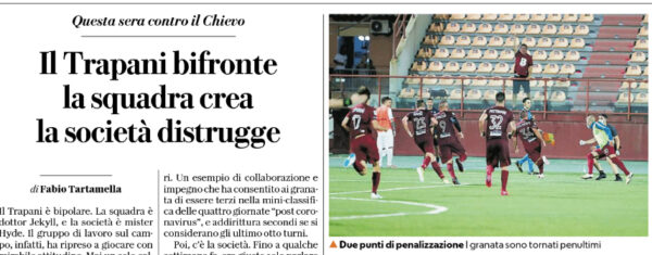 L'edizione odierna di "Repubblica" parla di un trapani "bipolare". La squadra crea, mentre la società distrugge. A sei giornate dalla...
