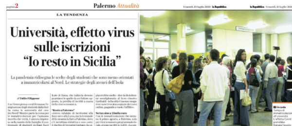 Repubblica: “Università, effetto virus sulle iscrizioni: «Io resto in Sicilia»”