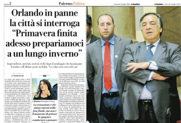 Repubblica: “Palermo. Orlando in panne, la città si interroga «Primavera finita, adesso prepariamoci ad un lungo inverno»”