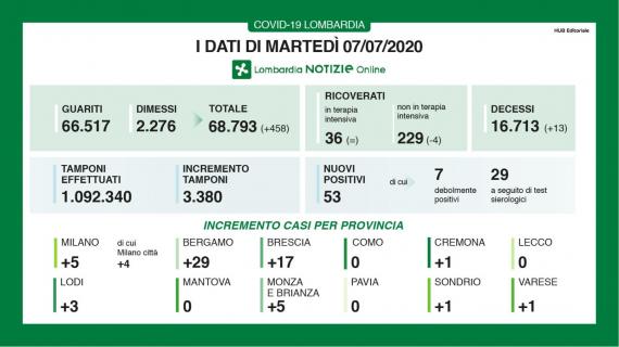 La Regione Lombardia ha effettuato 3.380 nuovi tamponi e individuato 53* nuovi positivi al Coronavirus nelle ultime 24 ore. 458...