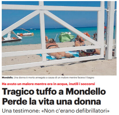 L'edizione odierna del "Giornale di Sicilia" parla della donna morta ieri a Mondello a seguito di un malore mentre nuotava....