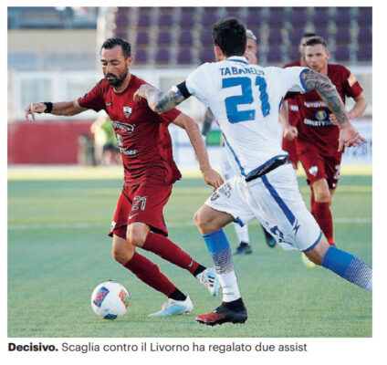 L'edizione odierna del "Giornale di Sicilia" riporta le parole del giocatore del Trapani Luigi Scaglia. «Castori ci ha messo sotto...