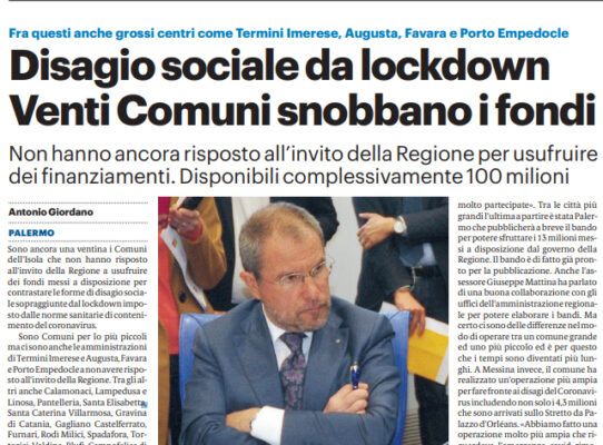 L'edizione odierna del "Giornale di Sicilia" parla di una ventina di Comunidell’Isola che non hanno risposto all’invito della Regione a...