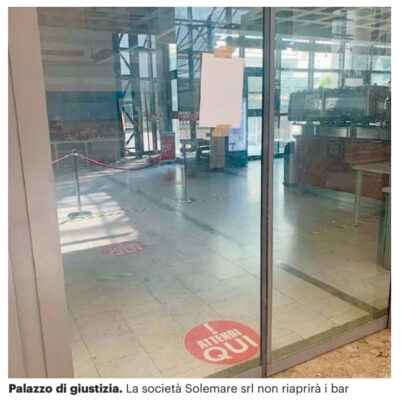 L'edizione odierna del "Giornale di Sicilia" parla dei bar del Tribunale di Palermo, che almeno per il momento, resteranno chiusi....
