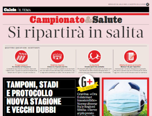 L'edizione odierna della "Gazzetta dello Sport" parla del quadro delle ripartenze degli sport di squadra, a tutti i livelli, che...