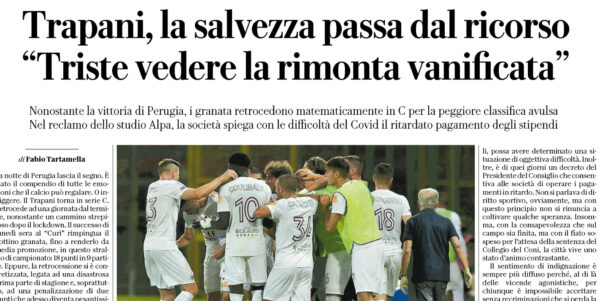 L'edizione odierna di "Repubblica" parla della rincorsa del Trapani che non è riuscito a salvarsi in serie B con una...