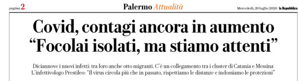 L'edizione odierna di "Repubblica" parla della situazione Coronavirus in Sicilia. Secondo l’ultimo bollettino, sono diciannove gli infetti registrati ieri nell’isola:...