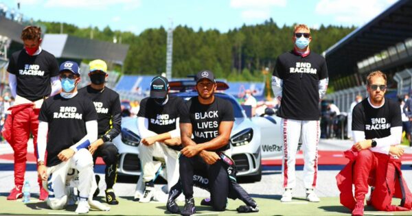 I piloti della Formula 1 dicono no al razzismo e lo fanno inginocchiandosi sulla griglia di partenza prima del via...