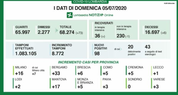Torna a diminuire il numero delle vittime in Lombardia dopo i dati di ieri, che riportavano 16 vittime in appena...