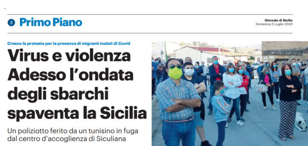 Nella sua prima pagina l'edizione odierna del "Giornale di Sicilia" si sofferma sull'emergenza sbarchi in Sicilia e sul rischio contagi.