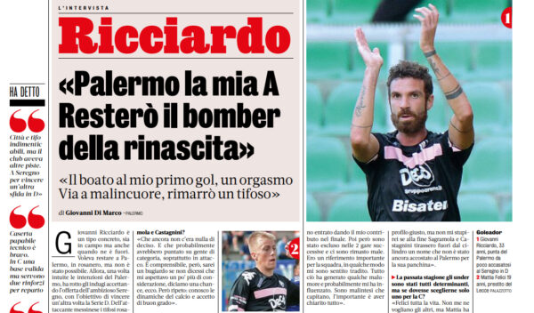 L’edizione odierna della “Gazzetta dello Sport” riporta le dichiarazioni di Giovanni Ricciardo, ex attaccante del Palermo: «9 reti? Di questo...