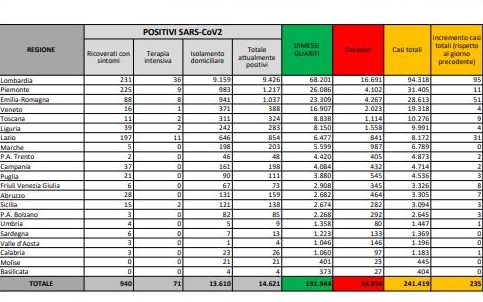 Sono 235 i nuovi casi di coronavirus in Italia, in lieve aumento rispetto a venerdì quando erano stati 223. I contagi...