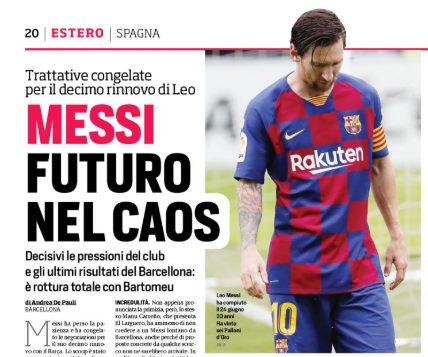 L'edizione odierna del "Corriere dello Sport" si sofferma sul futuro di Messi. Il fuoriclasse argentino potrebbe abbandonare in scadenza di...