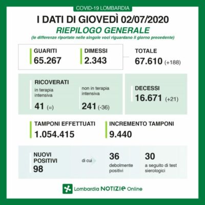 Coronavirus Lombardia: il Bollettino aggiornato
