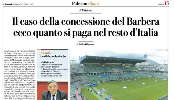Tiene banco in casa Palermo la questione legata alla concessione del "Renzo rosanero. L'edizione odierna di "La Repubblica" fa il...