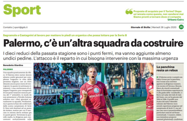 L'edizione odierna del "Giornale di Sicilia" parla di un Palermo che sarà praticamente da rifare. Bisognerà inserire in organico almeno...