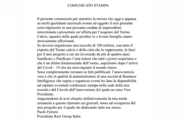 Ferrero smentisce: “Non faccio parte della cordata che vuole il Torino” – Il Comunicato