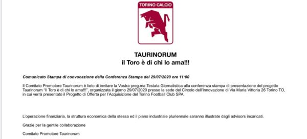 Una cordata pronta a rilevare il Torino. Notizie frammentarie, ma è stata annunciata una conferenza stampa per mercoledì 29 luglio....