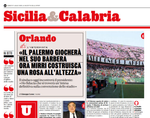 L'edizione odierna della "Gazzetta dello Sport" riporta le parole del sindaco di Palermo, Leoluca Orlando, sulla questione stadio. «Domani (oggi,...