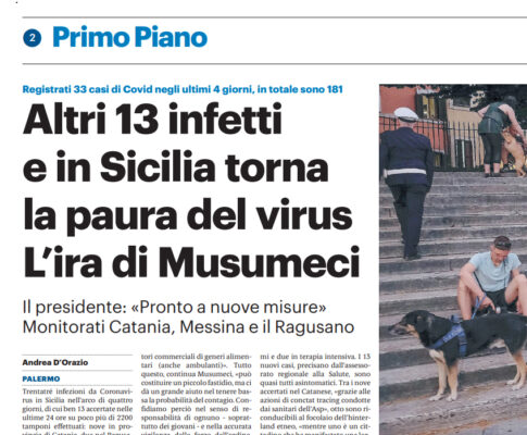 L'edizione odierna del "Giornale di Sicilia" si sofferma sull'emergenza Coronavirus in Sicilia. Sono 13 i nuovi contagi nelle ultime 24...