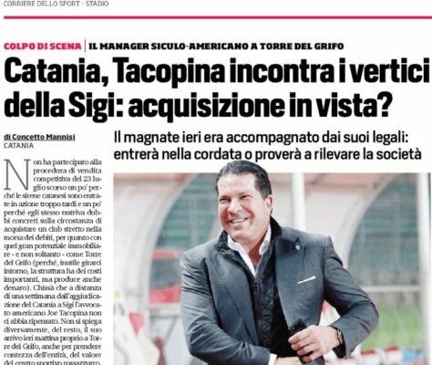 L'edizione odierna del "Corriere dello Sport" si concentra sulla visita dell'avvocato italo/americano Joe Tacopina (gli avi sono della provincia di...