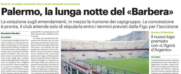 L'edizione odierna del "Giornale di Sicilia" si sofferma sulla convenzione del "Barbera". La riunione del consiglio comunale si è protratta...