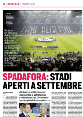 L'edizione odierna del "Corriere dello Sport" riporta le dichiarazioni di Vincenzo Spadafora, Ministro dello Sport, in merito ad una possibile...
