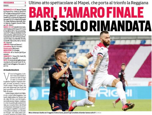 L'edizione odierna del "Corriere dello Sport" parla della finale playoff di ieri sera vinta dalla Reggina contro il Bari. Dopo...