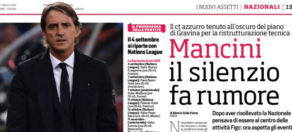L'edizione odierna del "Corriere dello Sport" parla di Mancini, che credeva di essere al centro delle attività della Figc ma...