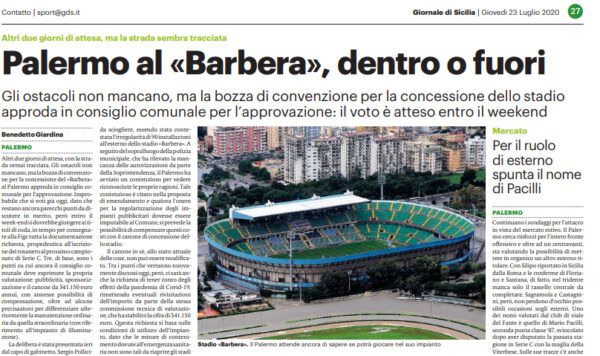 L'edizione odierna del "Giornale di Sicilia" parla della questione Barbera. Altri due giorni di attesa, con la strada ormai tracciata....