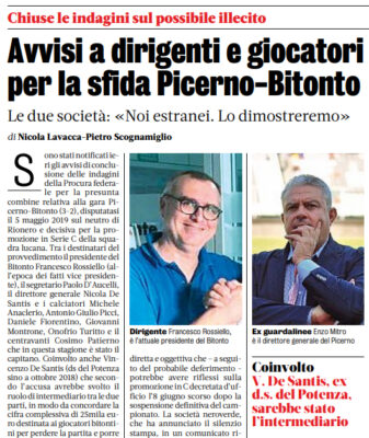 L'edizione odierna della "Gazzetta dello Sport " parla della presunta combine in serie C. Sono stati notificati ieri gli avvisi...