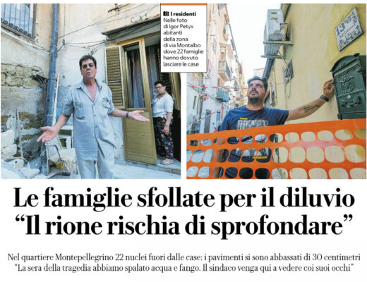 L'edizione odierna di "Repubblica" parla degli sfollati a Palermo dopo il diluvio di mercoledì scorso. Nel quartiere Montepellegrino i residenti...