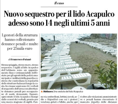 L'edizione odierna di "Repubblica" parla del nuovo sequestro al lido Acapulco dell'addaura. In cinque anni sono 14 i verbali di...