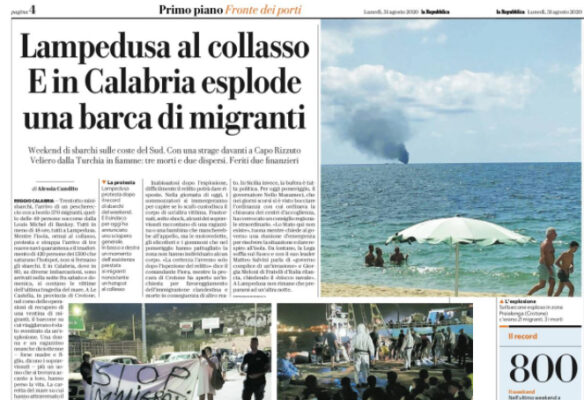 L'edizione odierna de "La Repubblica" si sofferma sul caos migranti. Sono arrivati circa 370 migranti nelle ultime 24 ore a...