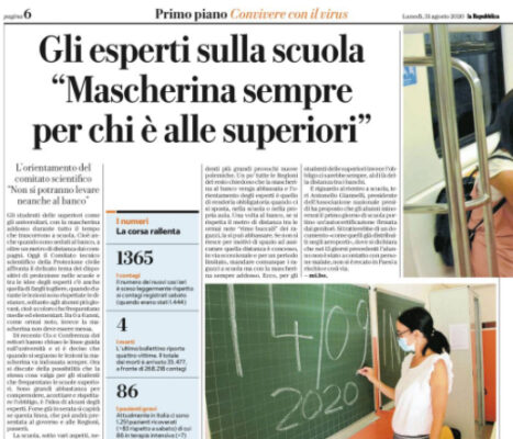 L'edizione odierna de "La Repubblica" si sofferma sulle rassicurazioni degli esperti relative al mondo della scuola. Gli studenti delle superiori...
