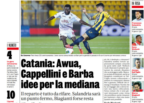 L'edizione odierna della "Gazzetta dello Sport" si sofferma sul calciomercato del Catania. Un vecchio pallino rossazzurro è Theo Awua, ghanese...