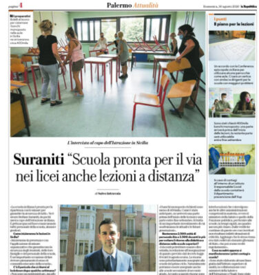 Repubblica: “Sicilia. Suraniti «Scuola pronta per il via nei licei anche lezioni a distanza»”