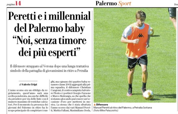 L'edizione odierna de "La Repubblica" riporta le dichiarazioni di Manuel Peretti, difensore del Palermo: «Pretendo molto da me stesso –...