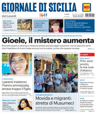 Nella sua prima pagina l'edizione odierna del "Giornale di Sicilia" si sofferma sul mistero di Gioele e sull'ordinanza di Musumeci...
