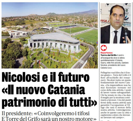 L'edizione odierna della "Gazzetta dello Sport" si sofferma sul Catania. Gaetano Nicolosi, attuale presidente del club, spiega: «Un gesto d’amore...