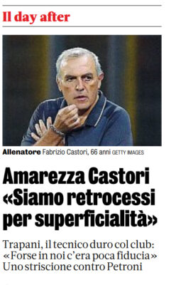 L'edizione odierna della "Gazzetta dello Sport" riporta le dichiarazioni di Fabrizio Castori, nell'ultimo anno alla guida del Trapani: «Provo tanto...