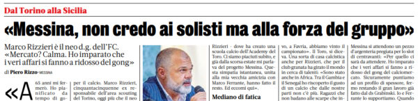 L'edizione odierna della "Gazzetta dello Sport" riporta le dichiarazioni di Marco Rizzieri, DG dell'FC Messina: «Arena? Ci siamo piaciuti subito,...