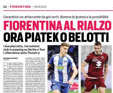 L'edizione odierna del "Corriere dello Sport" si sofferma sulla Fiorentina. Rimbalzano con decisione i nomi di Piatek e Belotti per...