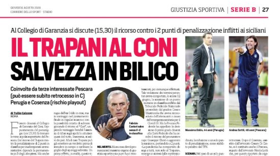 L'edizione odierna del "Corriere dello Sport" si sofferma sulla situazione del Trapani. L'appuntamento cruciale è oggi pomeriggio alle 15:30 presso...