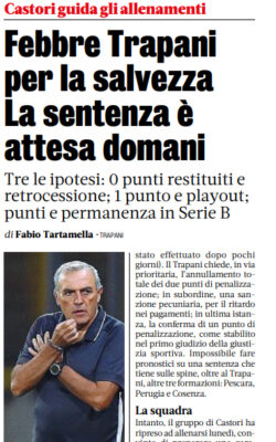 L'edizione odierna della "Gazzetta dello Sport" parla della situazione del Trapani. La febbre sale ad ogni ora che trascorre -...