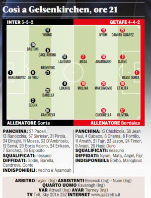 Questa sera tornerò in scena l'Europa League con il match tra Inter e Getafe. In alto le probabili formazioni a...