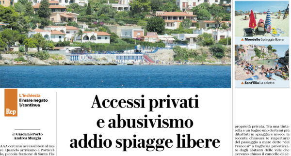 Repubblica: “Palermo. Il mare negato. Accessi privati e abusivismo addio spiagge libere”