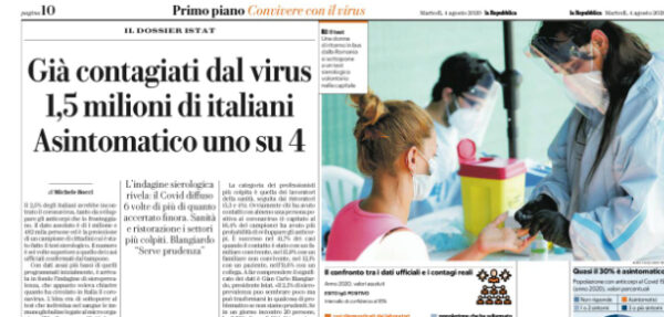 L'edizione odierna de "La Repubblica" si sofferma sull'emergenza Coronavirus in Italia. Il 2,5% degli italiani avrebbe incontrato il Covid-19. Interessante...