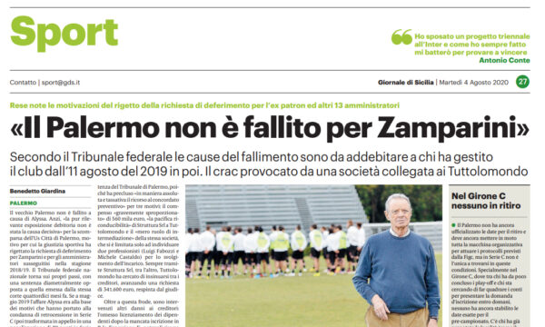L'edizione odierna del "Giornale di Sicilia" parla delle motivazioni del Tribunale Federale Nazionale che ha spiegato le motivazioni del rigetto...