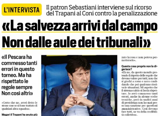 L'edizione odierna del "Corriere dello Sport" riporta un'intervista realizzata al patron del Pescara Sebastiani. «Cosa mi aspetto dal verdetto di...